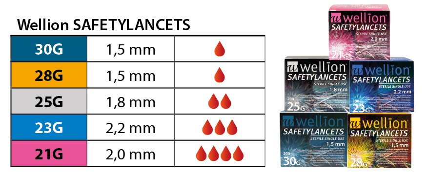 Wellion SAFETYLANCETS werden neben der privaten Nutzung besonders oft im medizinischen Alltag (Arztpraxen, Krankenhäuser, Pflegeheime) verwendet, da die Lanzette selbst, im Inneren des Gehäuses sicher umschlossen ist. Eine zweite Verwendung ist durch den Sicherheitsmechanismus ausgeschlossen, somit sind Anwender und medizinisches Fachpersonal bestmöglich vor Nadelstichverletzungen geschützt.